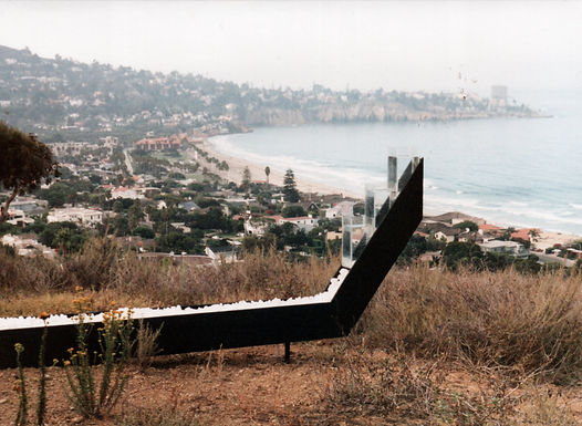 A salt filled trough that extended from the courtyard down the hillside towards the water creating a visual connection to the Scripps Pier and the Mexican Islands beyond. Mexico being so close and yet very far away.